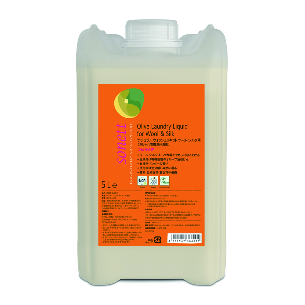 【新価格_2025年8月から】ナチュラルウォッシュリキッドウール・シルク用 5L 仕様書 JAN : 4007547364905商品コード : SNN3649 仕様書をダウンロードする