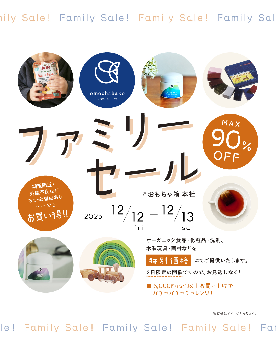 おもちゃ箱のお取り扱いアイテムを特別価格にてご提供するファミリーセールを開催いたします。